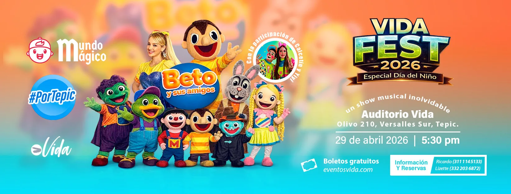 Llega Vida Fest 2026 — Especial Día del Niño, una tarde llena de música, color y diversión familiar pensada especialmente para consentir a los niños de nuestra ciudad.